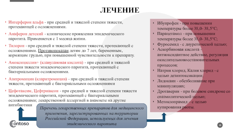 Перечень лекарственных препаратов для медицинского применения, зарегистрированных на территории Российской Федерации, используемых для лечения эпидемического паротита