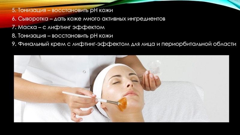 Слайд 15Сыворотки, кремы, маски должны обладать хорошим лифтинговым, тонизирующим, стимулирующим и