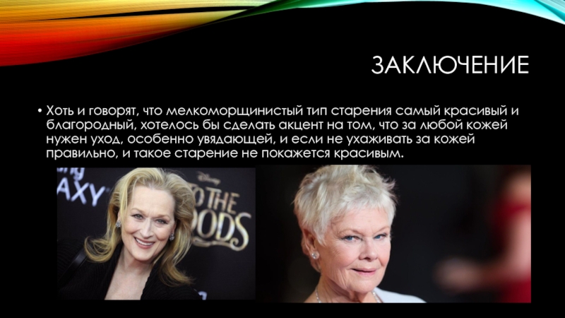 кожей нужен уход, особенно увядающей, и если не ухаживать за кожей правильно, и такое старение не покажется красивым.
