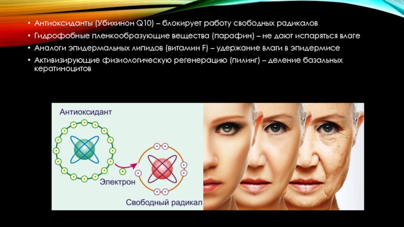 Слайд 17Антиоксиданты (Убихинон Q10) – блокирует работу свободных радикалов