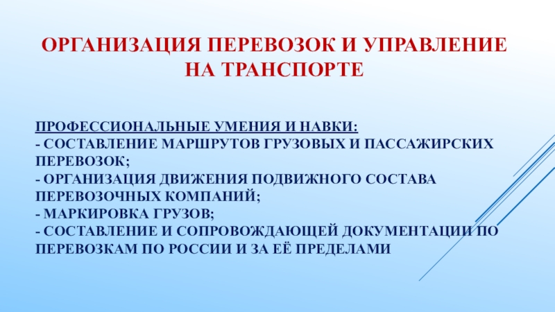 ОРГАНИЗАЦИЯ ПЕРЕВОЗОК И УПРАВЛЕНИЕ НА ТРАНСПОРТЕ