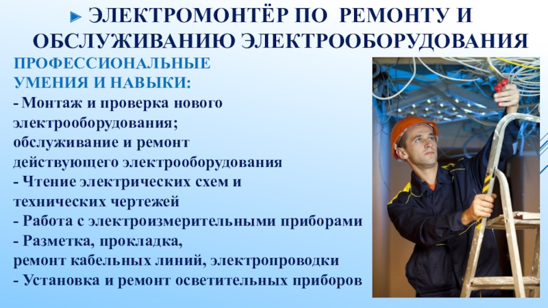 ЭЛЕКТРОМОНТЁР ПО РЕМОНТУ И ОБСЛУЖИВАНИЮ ЭЛЕКТРООБОРУДОВАНИЯ