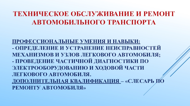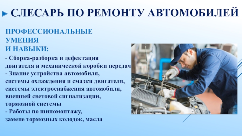 СЛЕСАРЬ ПО РЕМОНТУ АВТОМОБИЛЕЙ