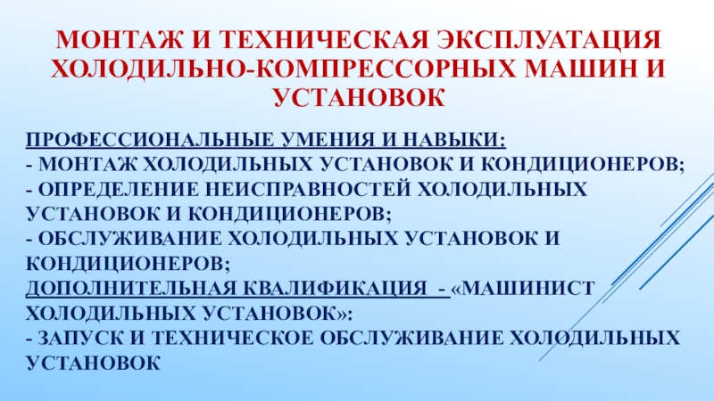 МОНТАЖ И ТЕХНИЧЕСКАЯ ЭКСПЛУАТАЦИЯ ХОЛОДИЛЬНО-КОМПРЕССОРНЫХ МАШИН И УСТАНОВОК