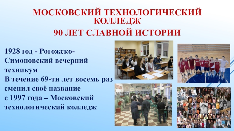 раз сменил своё название с 1997 года – Московский технологический колледж