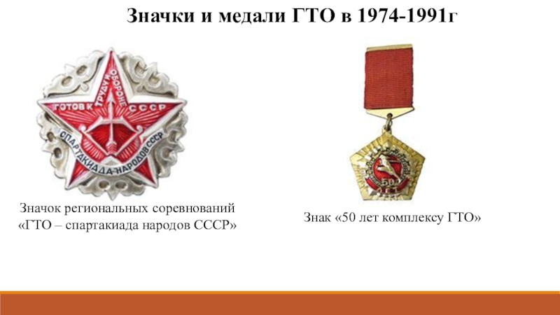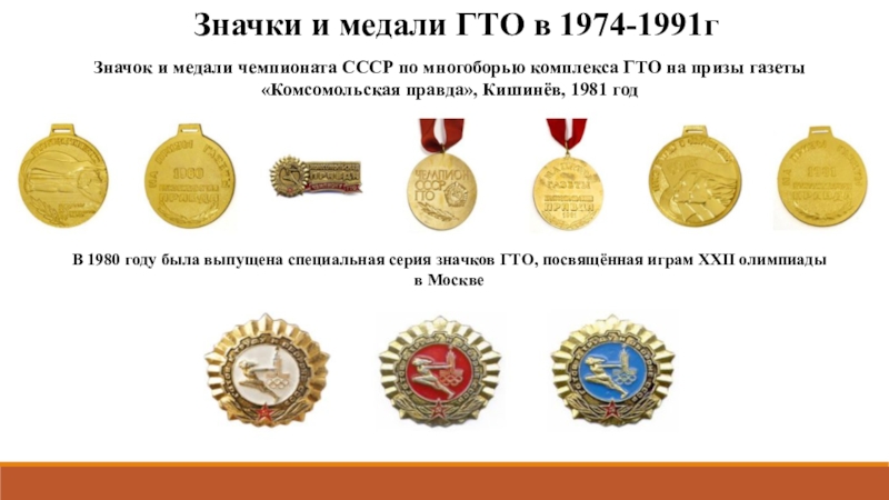 Слайд 25Значки и медали ГТО в 1974-1991г