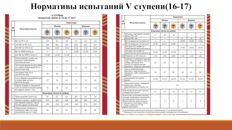 Слайд 31Нормативы испытаний V ступени(16-17)
