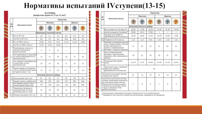 Слайд 30Нормативы испытаний IVступени(13-15)