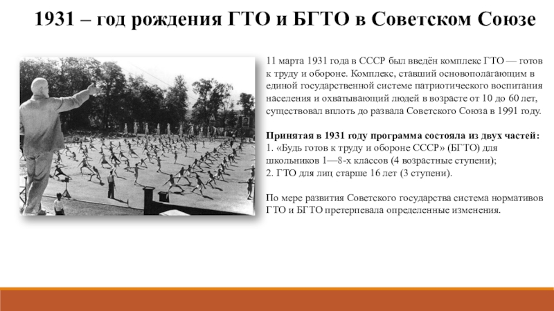 Слайд 51931 – год рождения ГТО и БГТО в Советском Союзе