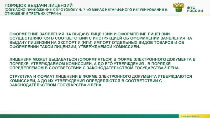 (Согласно Приложение к протоколу № 7 «О мерах нетарифного регулирования в отношении третьих стран»)