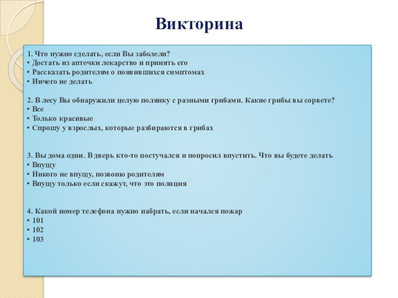3. Вы дома одни. В дверь кто-то постучался и попросил впустить. Что вы будете делать