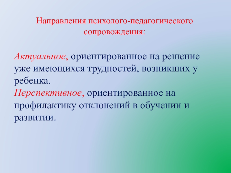 Перспективное, ориентированное на профилактику отклонений в обучении и развитии.