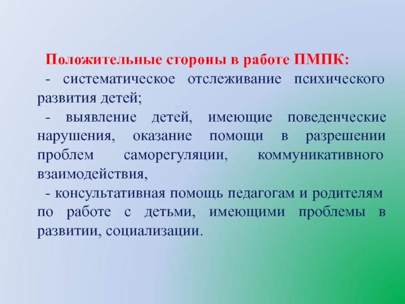 - консультативная помощь педагогам и родителям по работе с детьми, имеющими проблемы в развитии, социализации.