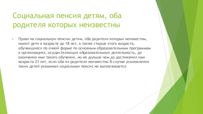 Слайд 61Социальная пенсия детям, оба родителя которых неизвестны