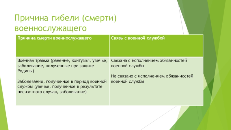 Слайд 23Причина гибели (смерти) военнослужащего