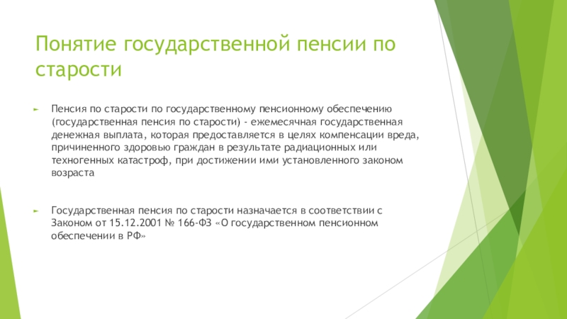 Слайд 4Понятие государственной пенсии по старости