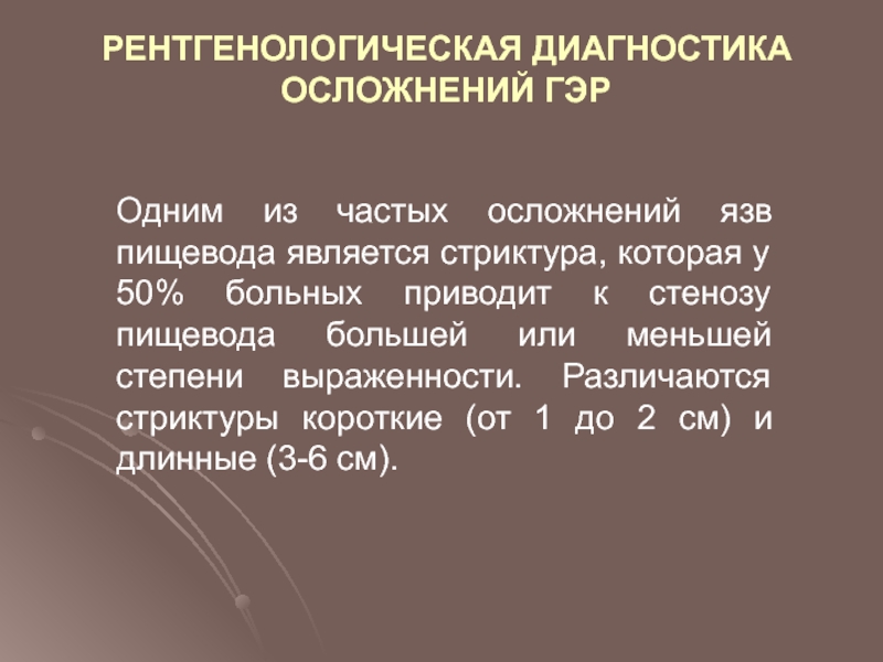 Слайд 39Одним из частых осложнений язв пищевода является стриктура, которая у