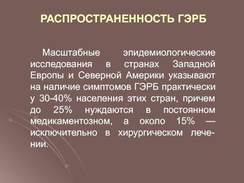 Северной Америки указывают на наличие симптомов ГЭРБ практически у 30-40%