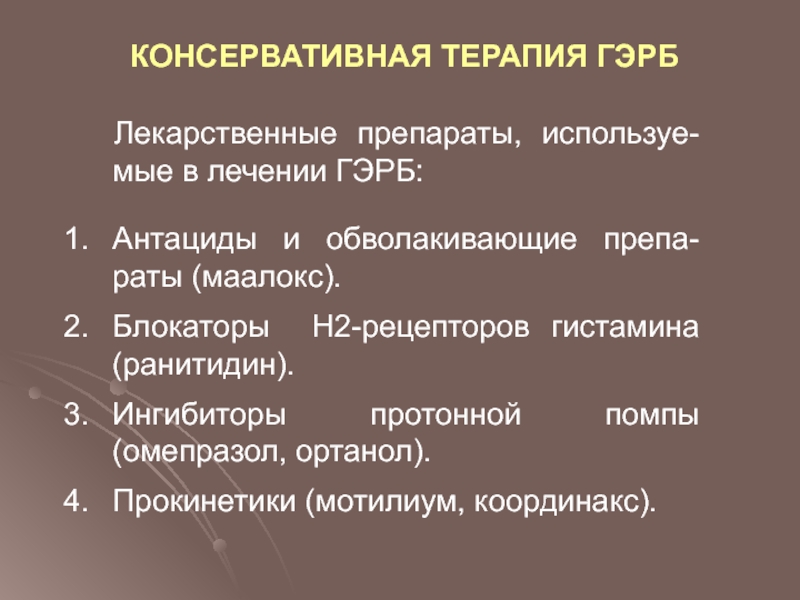 Слайд 44 КОНСЕРВАТИВНАЯ ТЕРАПИЯ ГЭРБ