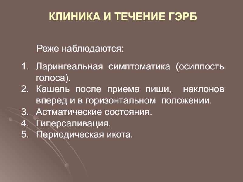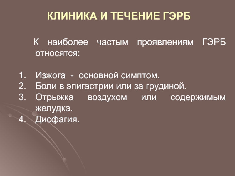 Слайд 10 КЛИНИКА И ТЕЧЕНИЕ ГЭРБ