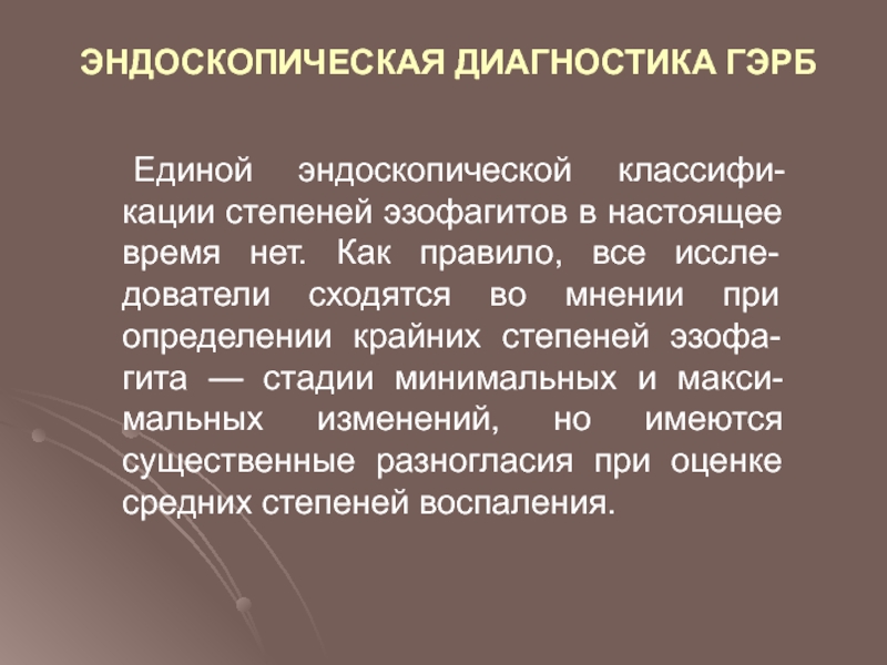 при определении крайних степеней эзофа-гита — стадии минимальных и макси-мальных изменений, но имеются существенные разногласия при оценке средних степеней воспаления.