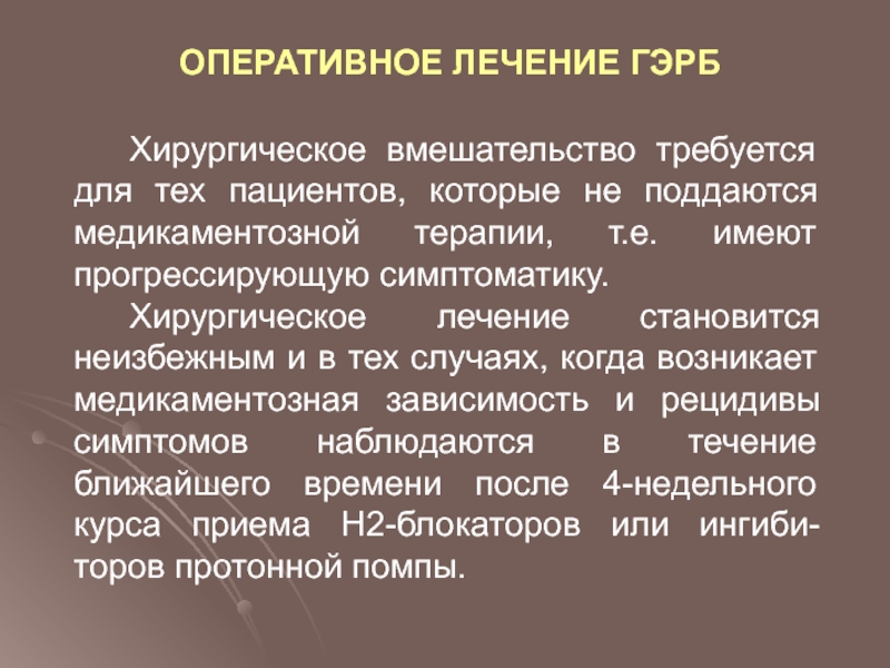 Слайд 46 ОПЕРАТИВНОЕ ЛЕЧЕНИЕ ГЭРБ