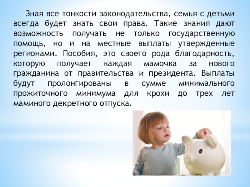 Слайд 17 Зная все тонкости законодательства, семья с детьми всегда будет знать
