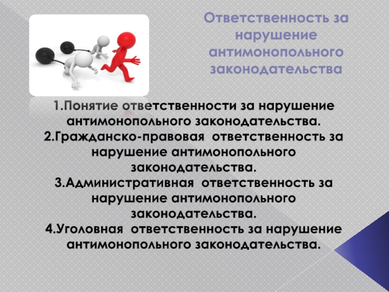 Слайд 20Ответственность за нарушение антимонопольного законодательства