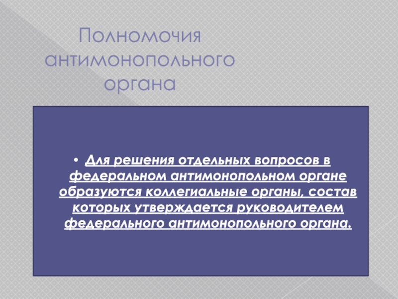 Для решения отдельных вопросов в федеральном антимонопольном органе