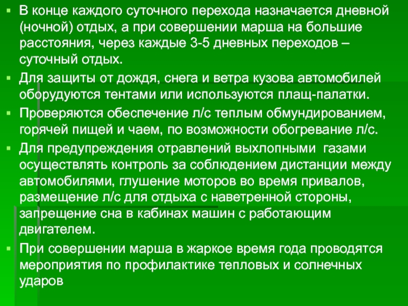 Слайд 9В конце каждого суточного перехода назначается дневной (ночной) отдых, а