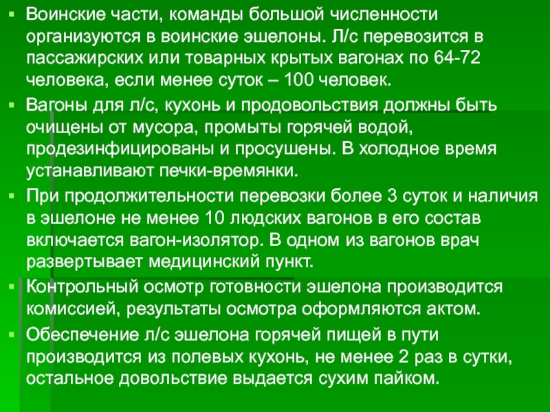 Слайд 16Воинские части, команды большой численности организуются в воинские эшелоны. Л/с