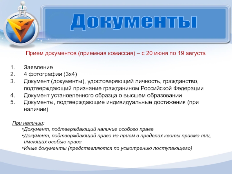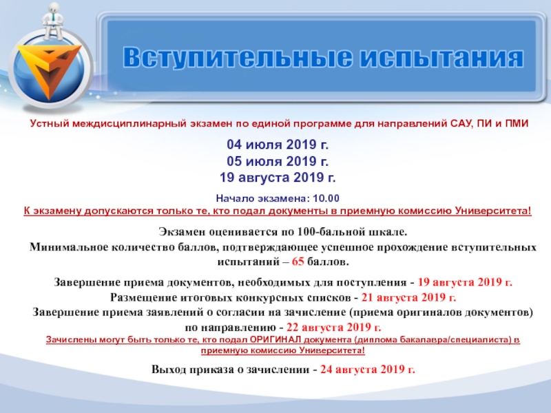 К экзамену допускаются только те, кто подал документы в приемную комиссию Университета!