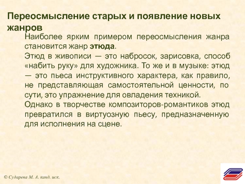 Однако в творчестве композиторов-романтиков этюд превратился в виртуозную пьесу, предназначенную для исполнения на сцене.
