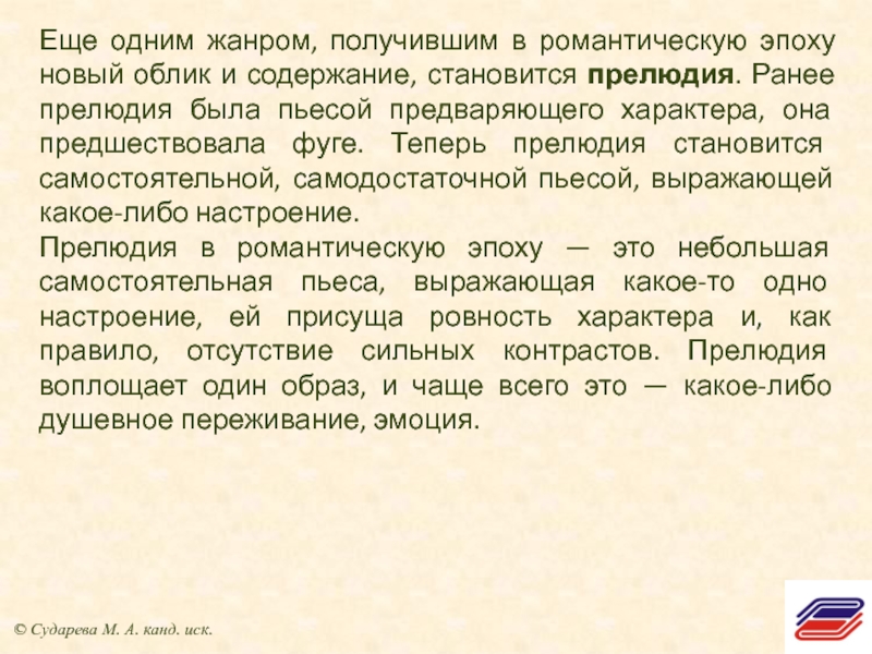 романтическую эпоху новый облик и содержание, становится прелюдия. Ранее прелюдия