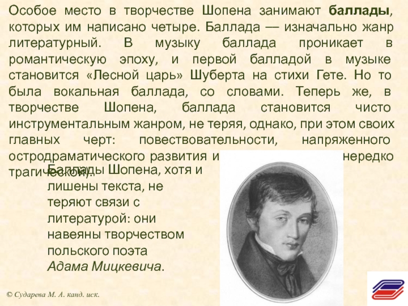 занимают баллады, которых им написано четыре. Баллада –– изначально жанр
