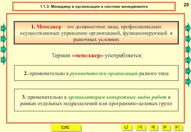 1. Менеджер – это должностное лицо, профессионально осуществляющее управление организацией, функционирующей в рыночных условиях