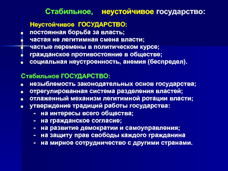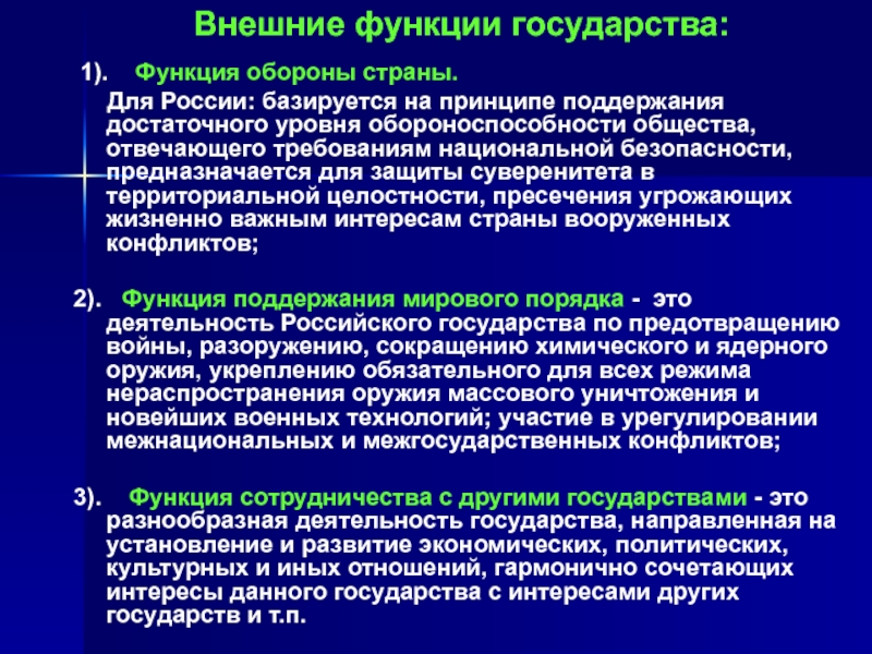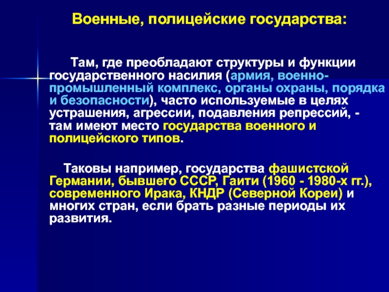безопасности), часто используемые в целях устрашения, агрессии, подавления репрессий, - там имеют место государства военного и полицейского типов.