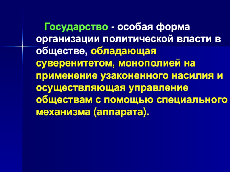 насилия и осуществляющая управление обществом с помощью специального механизма (аппарата).