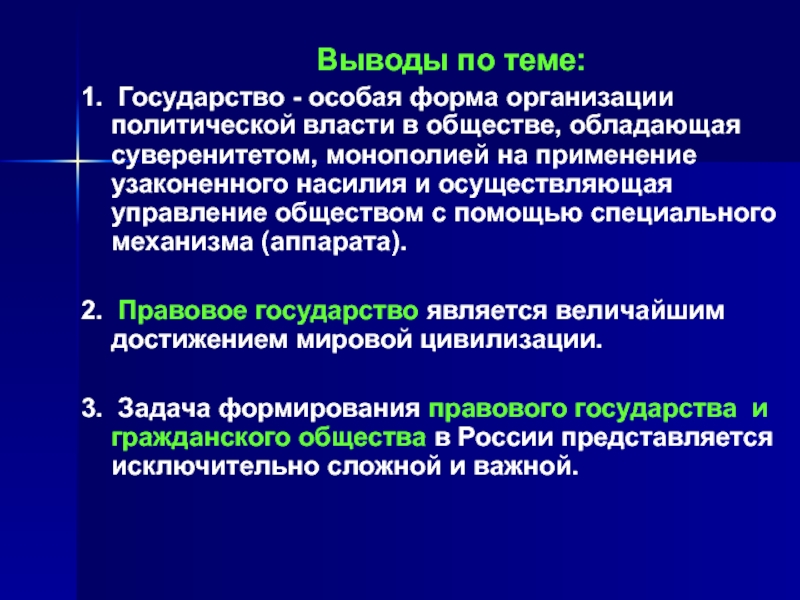 2. Правовое государство является величайшим достижением мировой цивилизации.