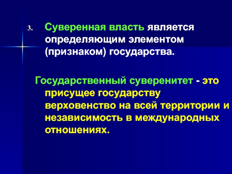 Слайд 13Суверенная власть является определяющим элементом (признаком) государства.