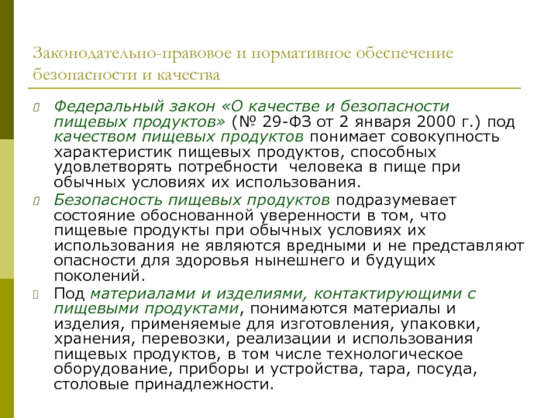 безопасности пищевых продуктов» (№ 29-ФЗ от 2 января 2000 г.)