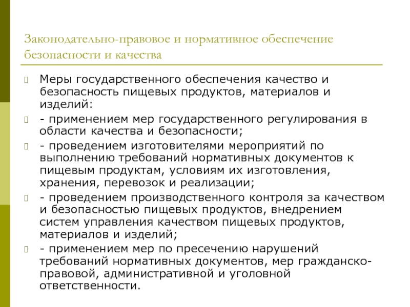 - Федеральный закон «О качестве и безопасности пищевых продуктов».