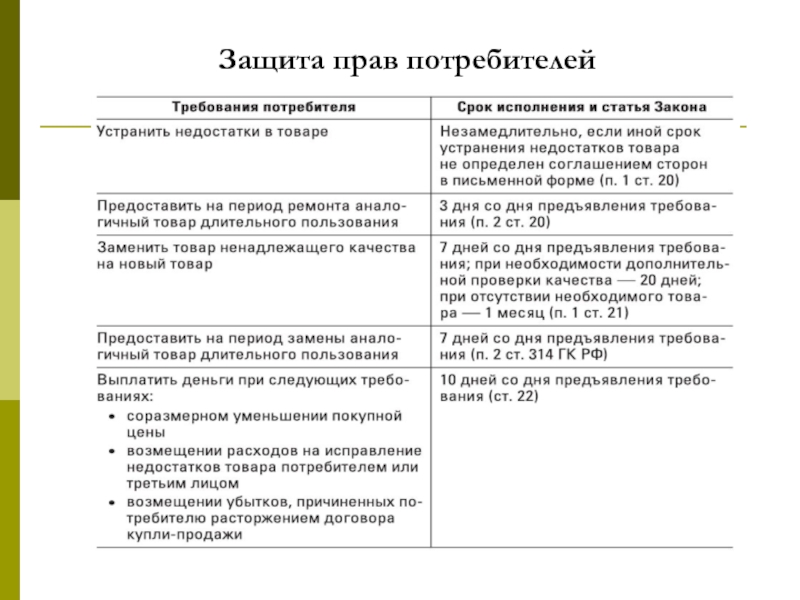 - гарантирует государственную и общественную защиту интересов потребителей, определяет механизм реализации этих прав.