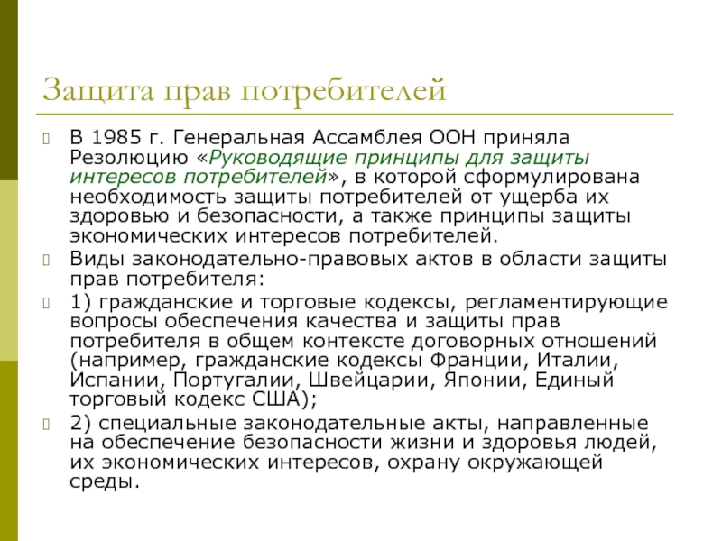 «Руководящие принципы для защиты интересов потребителей», в которой сформулирована необходимость