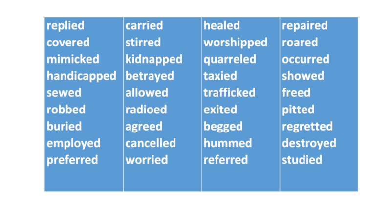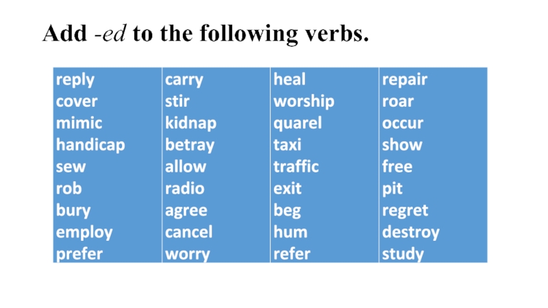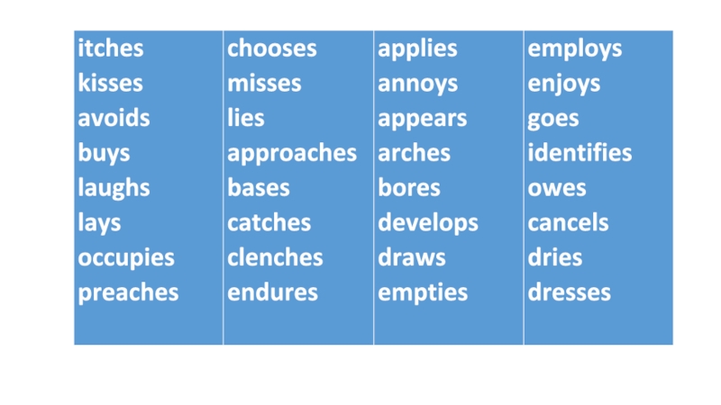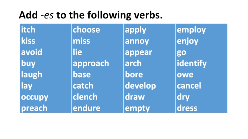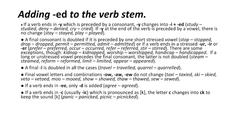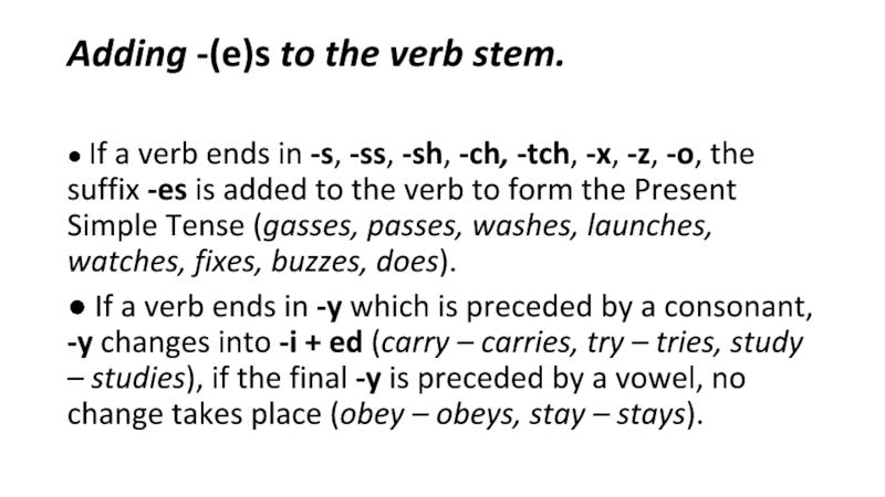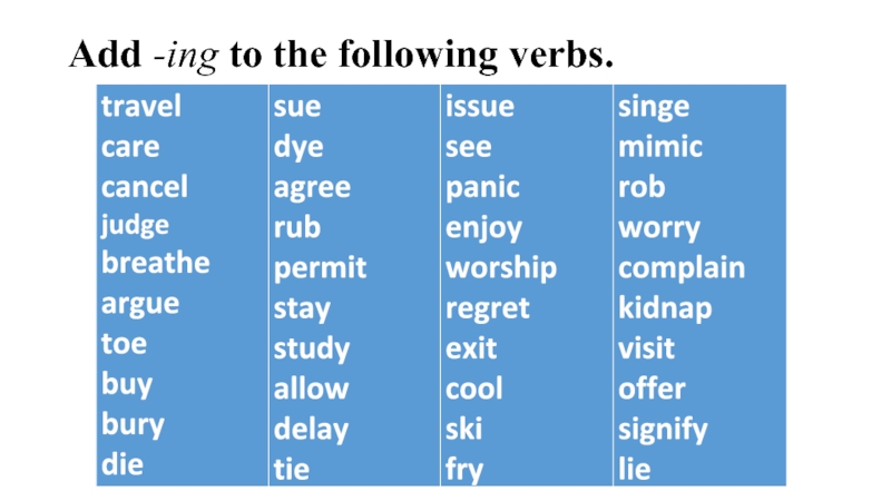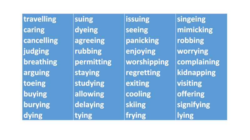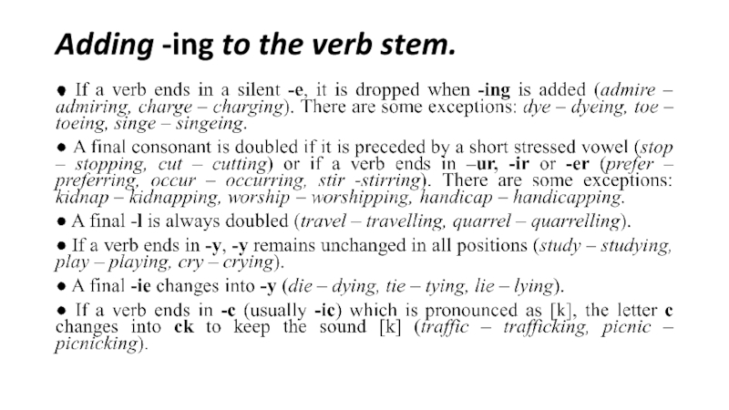 правила написания слов при добавлении суффиксов -ing, -ed, -es:
