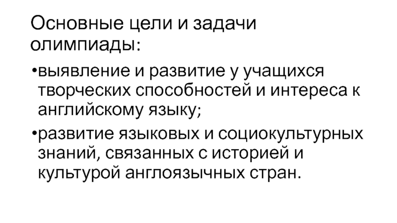 Слайд 2Основные цели и задачи олимпиады: