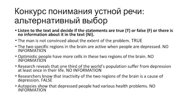 Слайд 6Конкурс понимания устной речи: альтернативный выбор