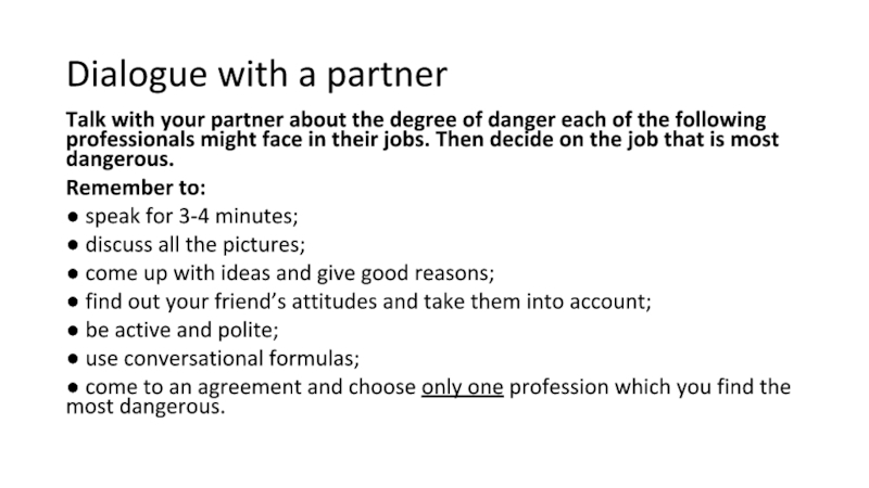 Слайд 84Dialogue with a partner
