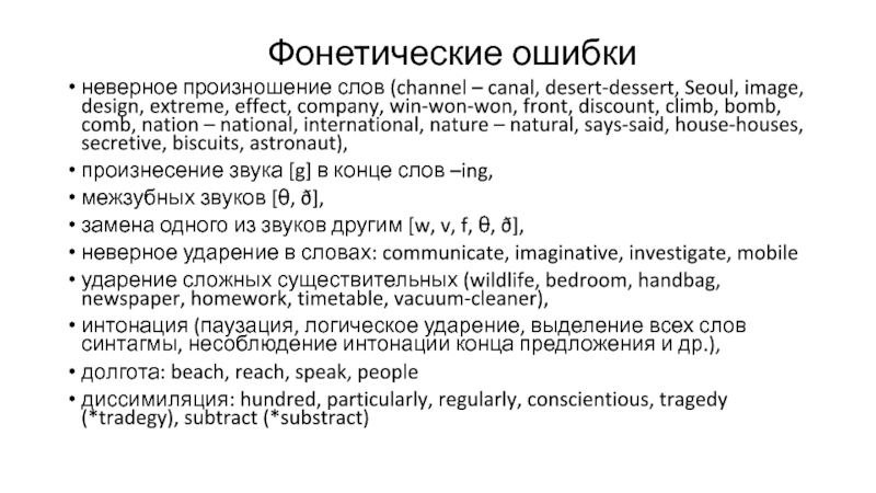 Слайд 96Фонетические ошибки