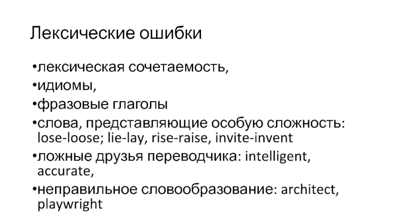 Слайд 91Лексические ошибки